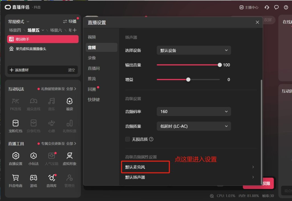 解決:在抖音(yīn)直播伴侶直播設置裡(lǐ)面,把聲音(yīn)延後,如(rú)下(xià)圖所示: