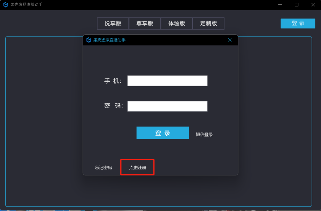 2)運行(xíng)“果殼虛拟直播助手”,選擇“點擊注冊”,進入注冊頁面,填入相(xiàng)關個(gè)人(rén)信息,完成注冊,然後通(tōλng)過剛才注冊的(de)賬号和(hé)密碼進行(xíng)登錄。