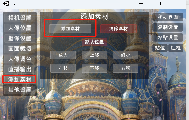 3)人(rén)像位置:點擊左邊菜單第二項 人(rén)像位置,可(kě)以調節 相(xiàng)機(jī)傳入畫(huà)面的(de) 大(dà)小(xiǎo),位移及¥旋轉,菜單最後邊的(de)兩個(gè)按鈕“站(zhàn)位”及“紅(hóng)框”,點擊“站(zhàn)位”,彈出參考站(zhàn)位的(de)小(xiǎo)白(bái)人(rén★),人(rén)的(de)站(zhàn)位建議(yì)按照(zhào) 小(xiǎo)白(bái)人&(rén)的(de)大(dà)小(xiǎo)站(zhàn)位(頭不(bù)要(yào)超過小(xiǎo)白(bái)人(rén)太多(duō),否則切換近(jìn)景運鏡人(rén)容易出框≤),調好(hǎo)站(zhàn)位後,再點擊“站(zhàn)位”,隐藏小(xiǎo)白(bái)人(rén)。 點“紅(hóng)框”按鈕,顯示的(∞de)是(shì)相(xiàng)機(jī)所拍(pāi)攝畫(huà)面的(de)大(dà)小(xiǎo)範圍。