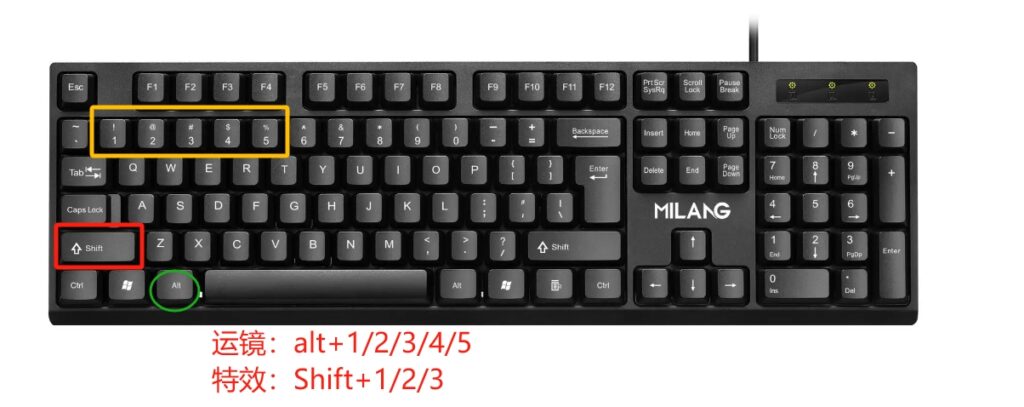 2)如(rú)要(yào)手動觸發特效/運鏡,需要(yào)用(yòng)鍵盤快(kuài)捷鍵,場(chǎng)景相(xiàng)應的(de)快(kuài)捷鍵如( rú)上(shàng)圖二所示,具體(tǐ)觸發的(de)按鈕如(rú)下(xià)圖所示: