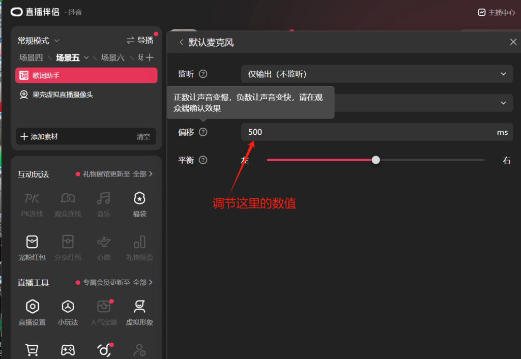 解決:在抖音(yīn)直播伴侶直播設置裡(lǐ)面,把聲音(yīn)延後,如(rú)下(xià)圖所示: