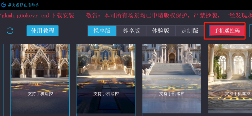 可(kě)以通(tōng)過雙擊場(chǎng)景圖片 打開(kāi)新場(chǎng)景,其次支持 特效 及 運鏡 播放(fàng)。注>意:手機(jī)操作(zuò)同時(shí)隻支持單個(gè)手機(jī)操作(zuò),要(yào)換手機(jī),得(de)先退ε出之前已經進入的(de)手機(jī)的(de)操控頁面。